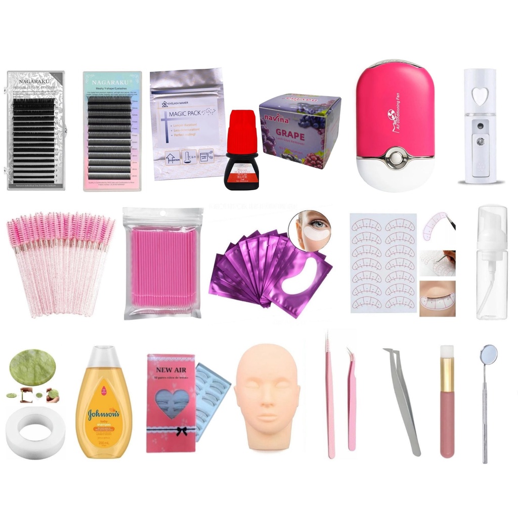 Kit Completo Treino Alongamento e Extensão Cílios Nagaraku Volume Brasileiro Y e Russo Cola Elite HS10 Higrometro Removedor Navina