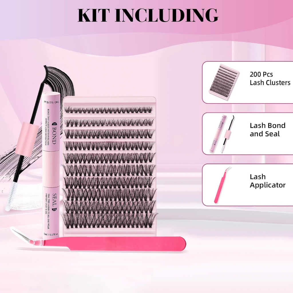 Kit De Extensão De Pestanas DIY Lash Com Pinça De Cola , Cluster Falsos Cílios , 200PCs 40D Curl