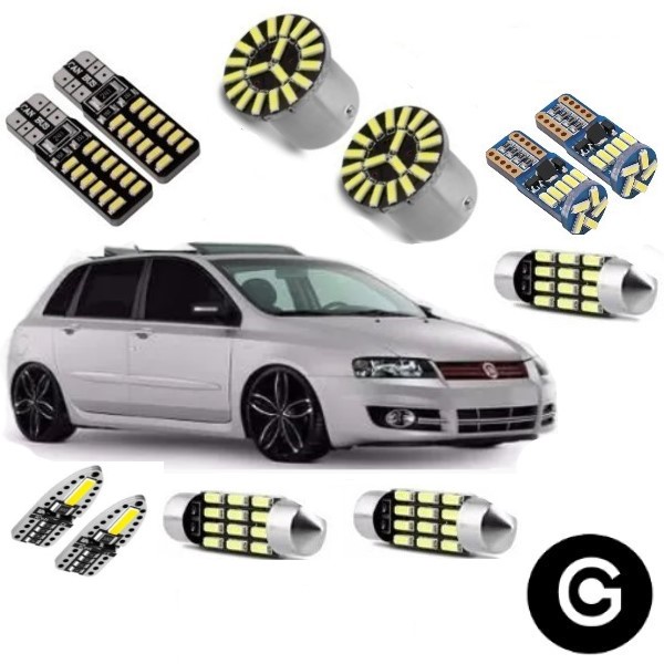 Kit Premium Lâmpada LED Fiat Stilo 2005-2008 Pingo Teto Placa Ré Farolete Branco