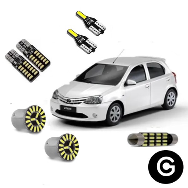 Kit Premium Lâmpada Led Toyota Etios Pingo Teto Placa Ré Farolete Branco