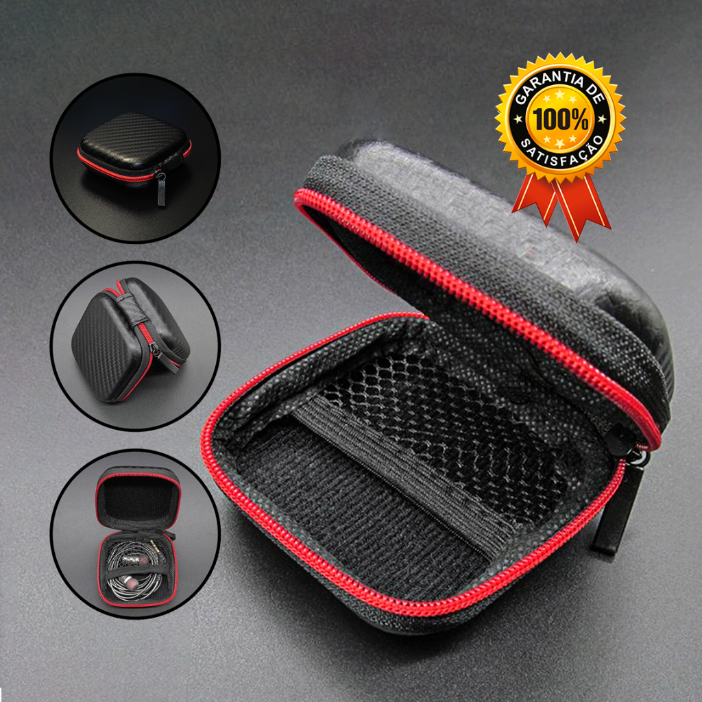 Case Estojo Bolsa Bag Fone De Ouvido Resistente Fibra de Carbono Kz Qkz Shure Jbl Preto Prova d´Água