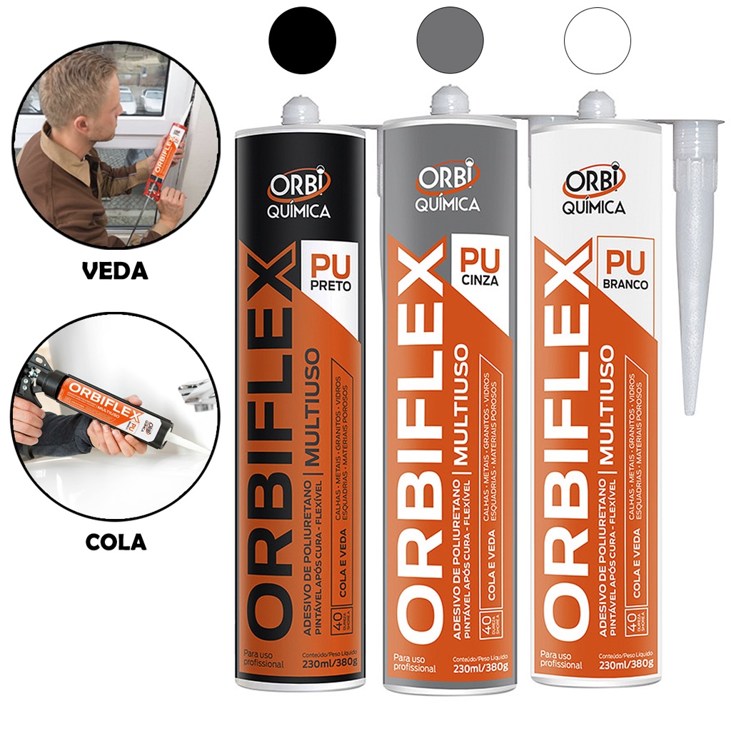 Selante Cola PU 40 Todas as Cores Preto/Branco/Cinza - Construção Reparo Uso Geral 380g Orbi Química