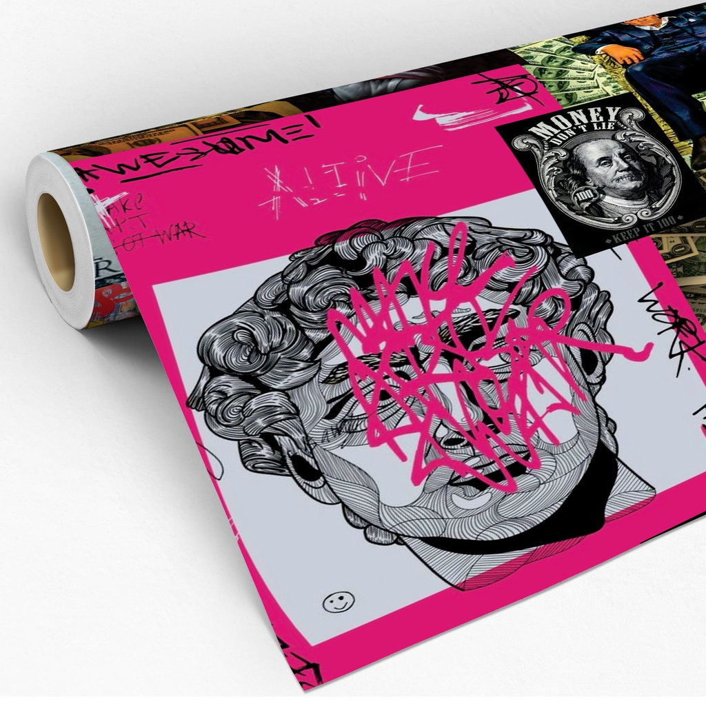 Papel de Parede Ades. Auto Colante Quadrinhos Gangster Dollar Fosco Lavável para Quarto e Sala - Pro Decor