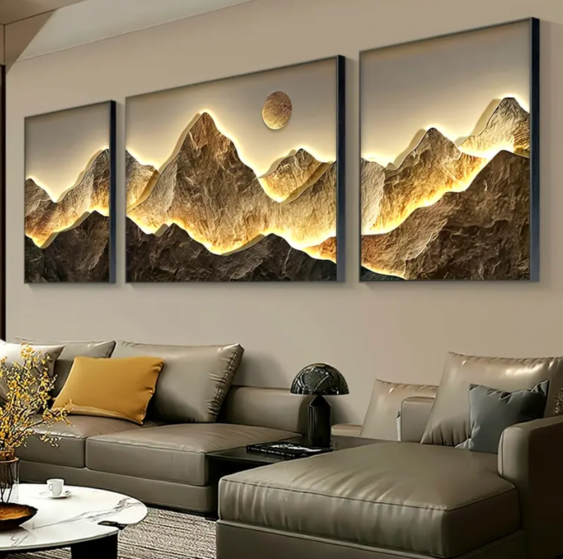 Quadros decorativos Grande180x60cm Conjunto de 3 peças de arte de parede em tela Glam Style - Impressões de pôsteres de cordilheira