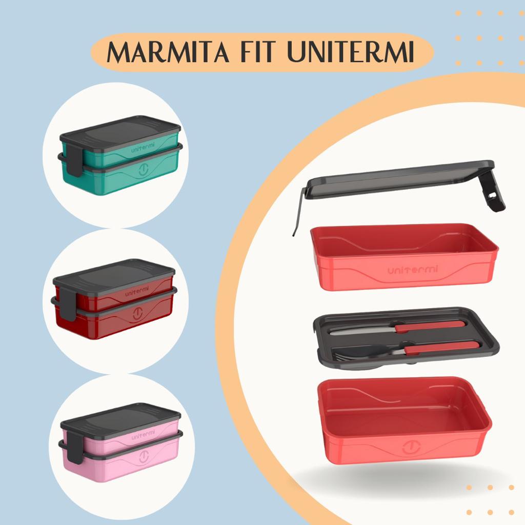 KIT Marmita Fit California Unitermi com Talheres e Divisorias