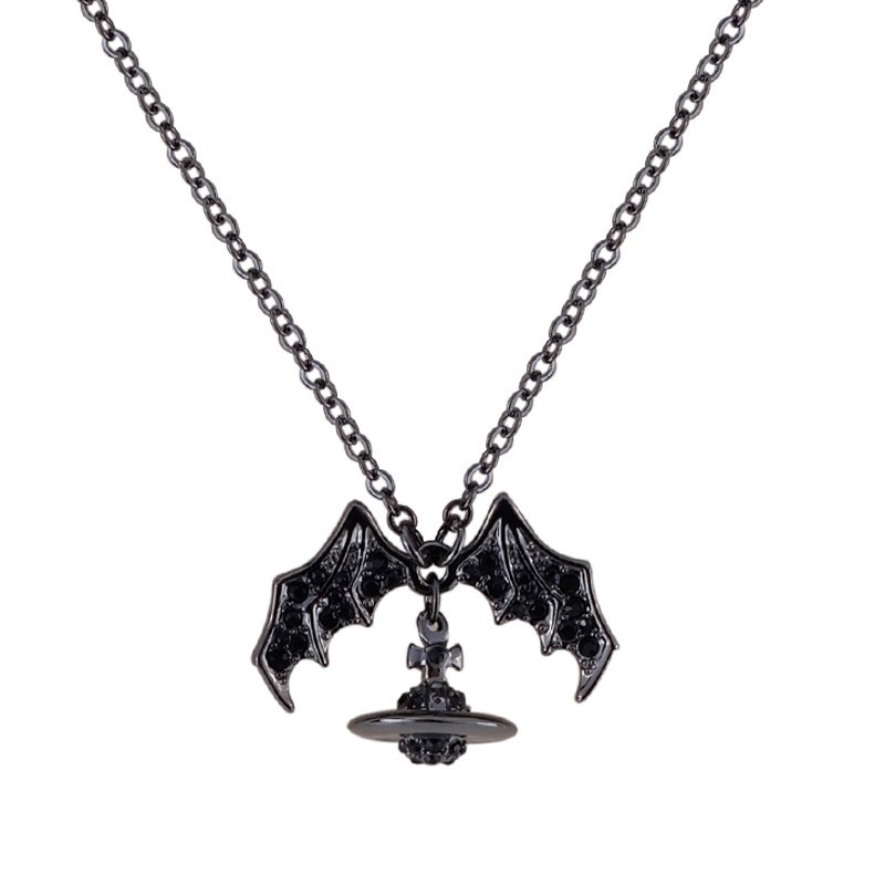 Vivienne West wood Black Bat Estéreo Saturn Necklace Estilo Punk