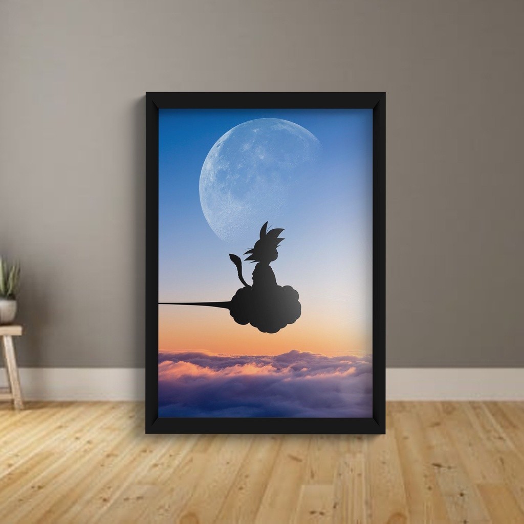 Quadro Anime Dragon Ball Goku Kakaroto na nuvem com Moldura