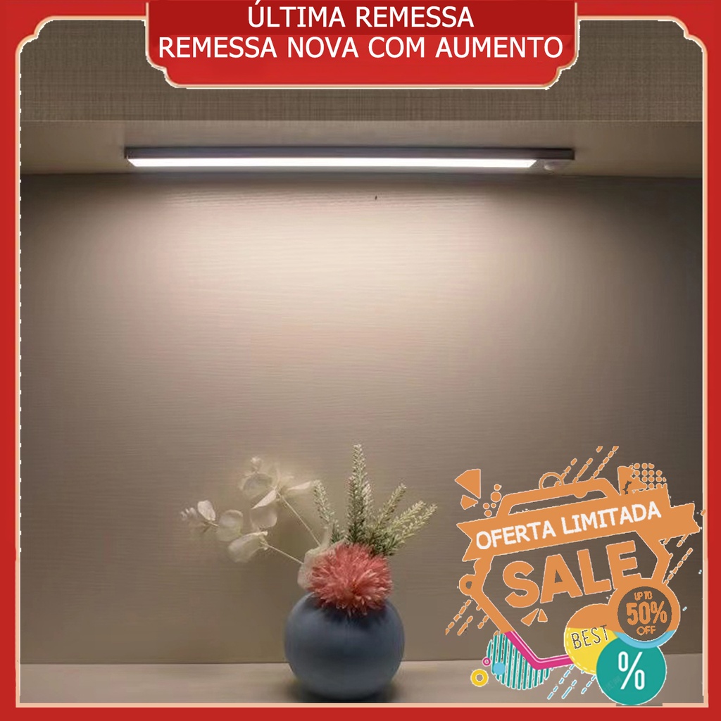 Lâmpada noturna LED com sensor de movimento sem fio USB recarregável para lâmpada de armário de cozinha guarda-roupa