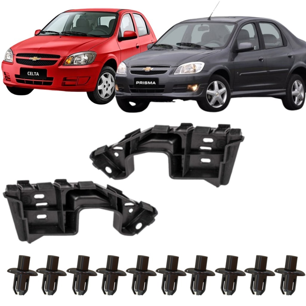 Par Suporte Guia Parachoque Dianteiro Celta Prisma 2007 até 2012 + Kit 10 Grampo P46 Presilha Parachoque