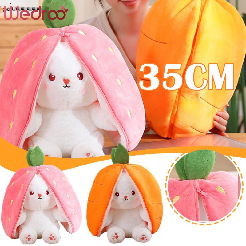 ✨ 2 Em 1 Coelhinho De Morango Pelúcia Orelhas Longas Cenoura De Ovo De Páscoa Presentes De Brinquedos Fofinhos De
