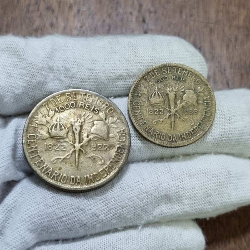 Lote de 2 Moedas 500 e 1000 Réis 1922 Independência Bronze
