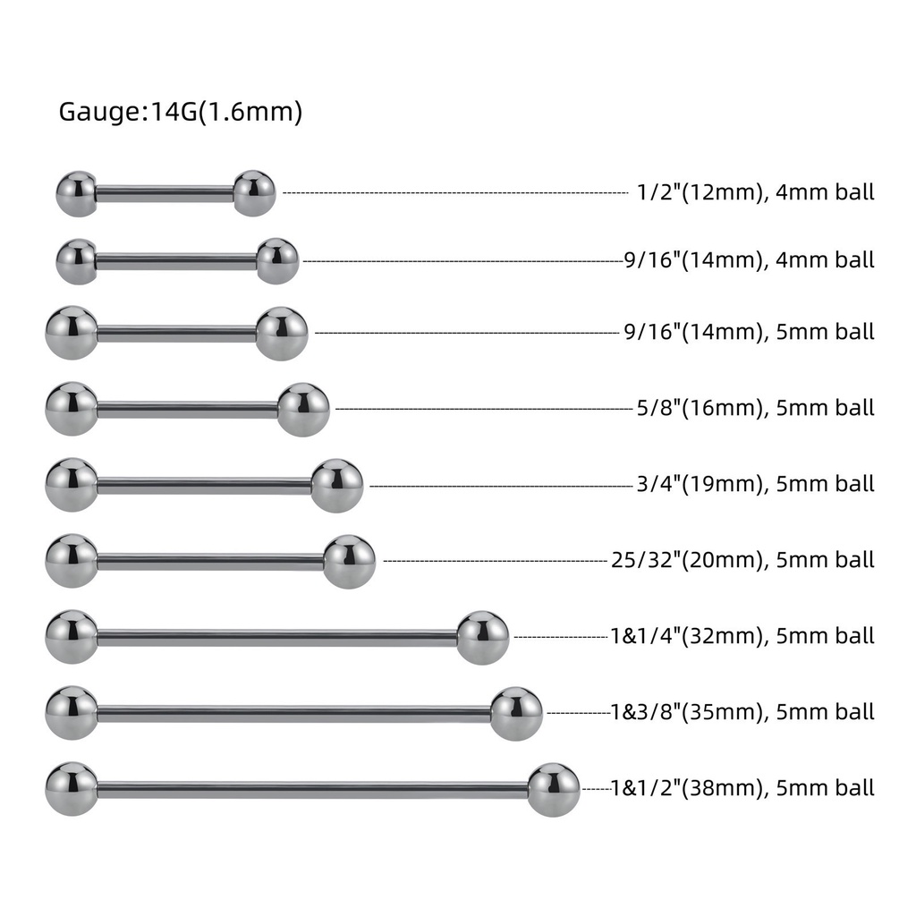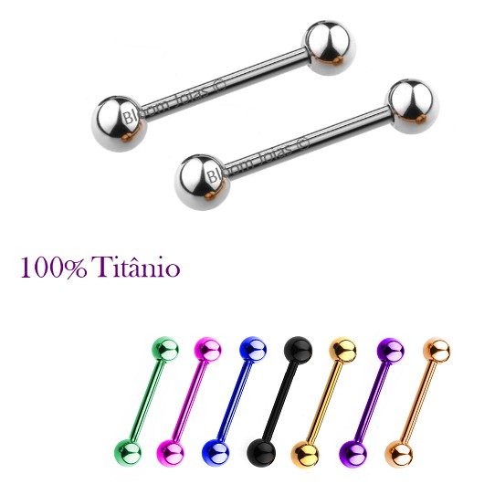 Piercing Barbell Mamilo Titânio Vários Tamanhos - 2 Unidades