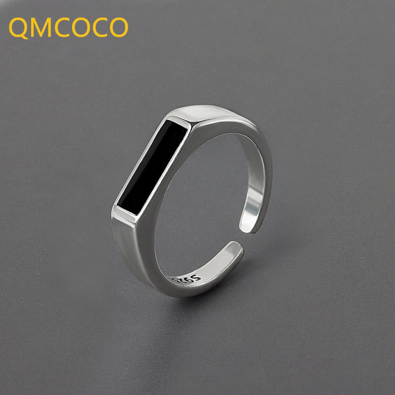 QMCOCO Prata Ouro Cor Anéis Da Moda Para Mulheres Vintage Minimalista Artesanal Pedra Preta Jóias Punk Hip-Hop Party Gift
