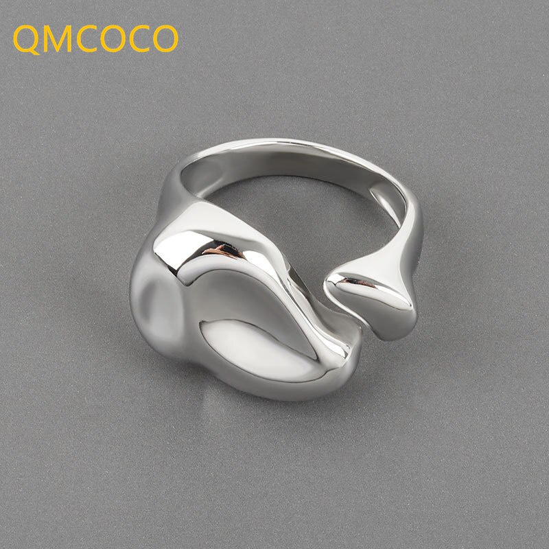 QMCOCO Prata Ouro Cor Irregular Geometria De Superfície Lisa Abertura Ajustável Anel Versão Coreana Simples Estilo Jóias Femininas