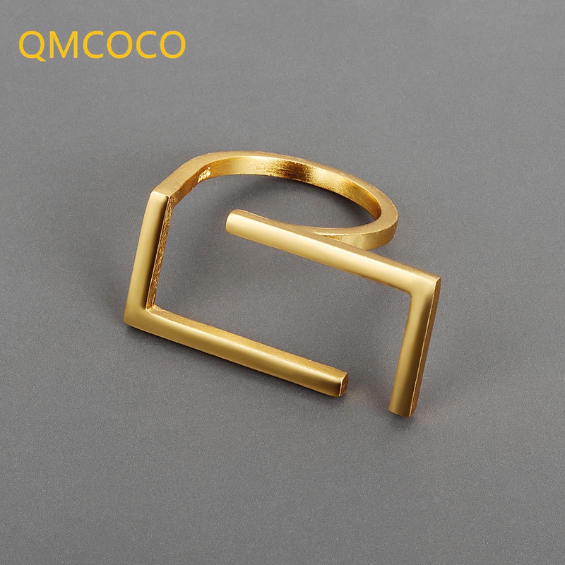 QMCOCO Prata Ouro Cor INS Estilo Quadrado Anel Simples De Ajuste De Abertura Lisa Para Mulher Presente De Festa
