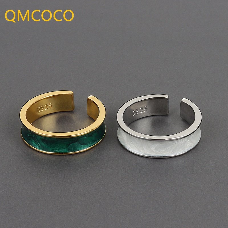 QMCOCO Nova Chegada Prata Ouro Cor Anéis Abertos INS Trendy Elegante Simples Verde E Branco Cola Para Festa Jóias Casal Anel