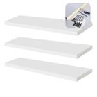 Kit 3 Prateleiras Lisa 50x20cm Suporte invisível Mdf Reta Branco De Parede Livro Organizadora Cozinha Quarto