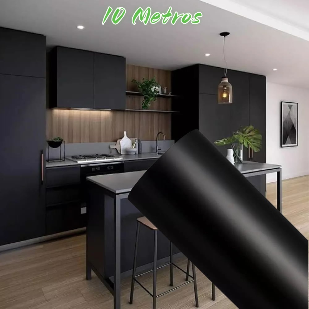Papel Adesivo Tipo Contact Preto Fosco Lavável com 10 Metros Paredes/ Móveis/Eletrodomésticos