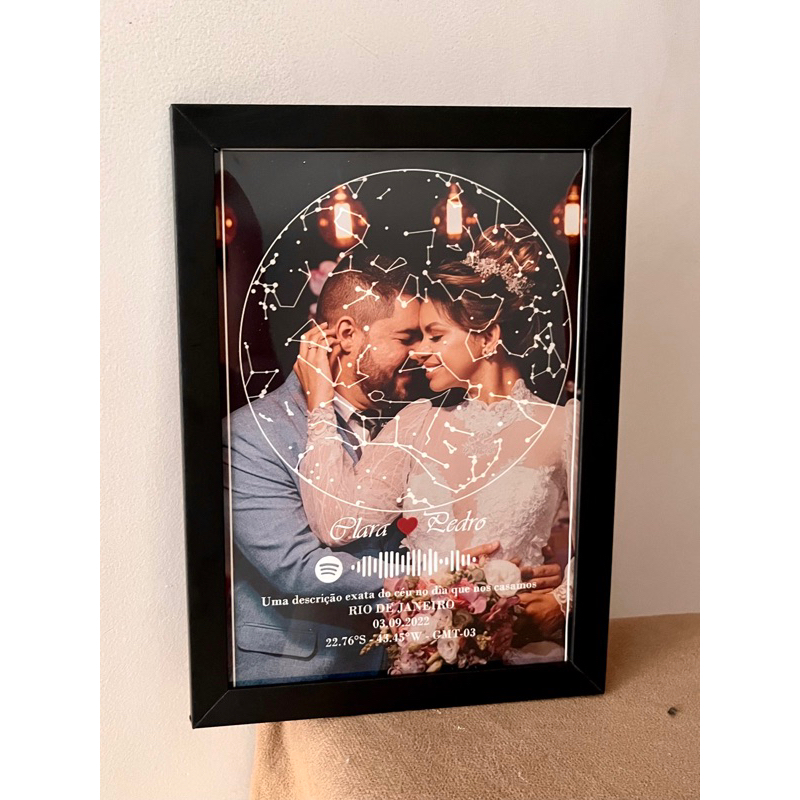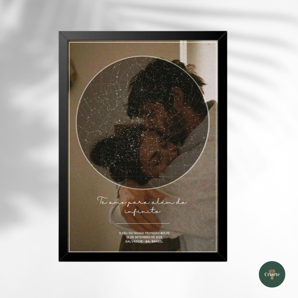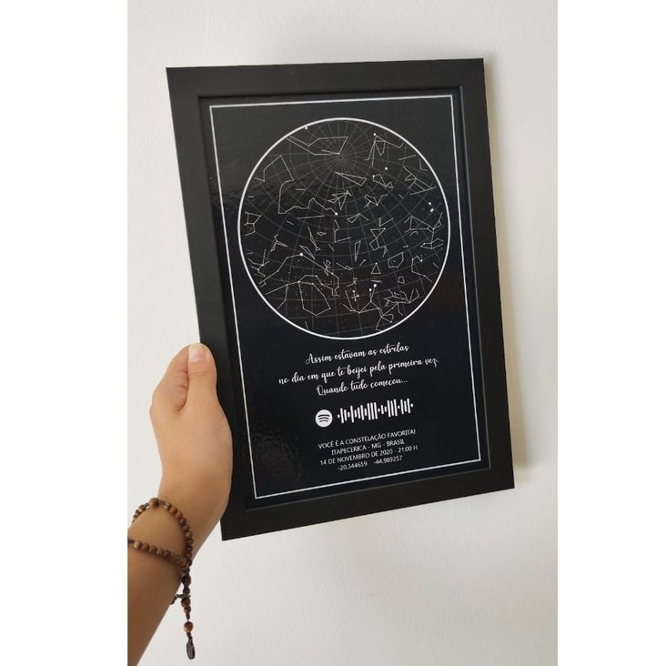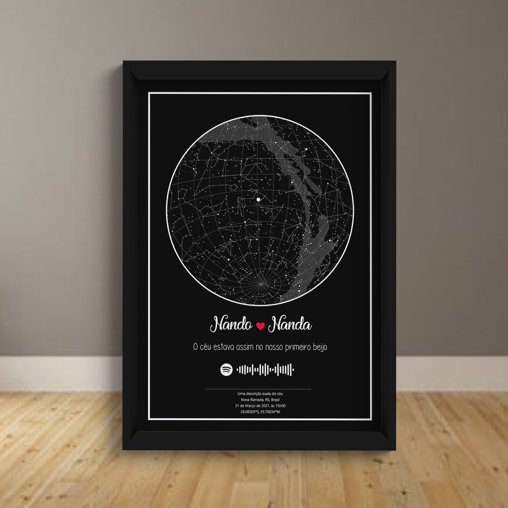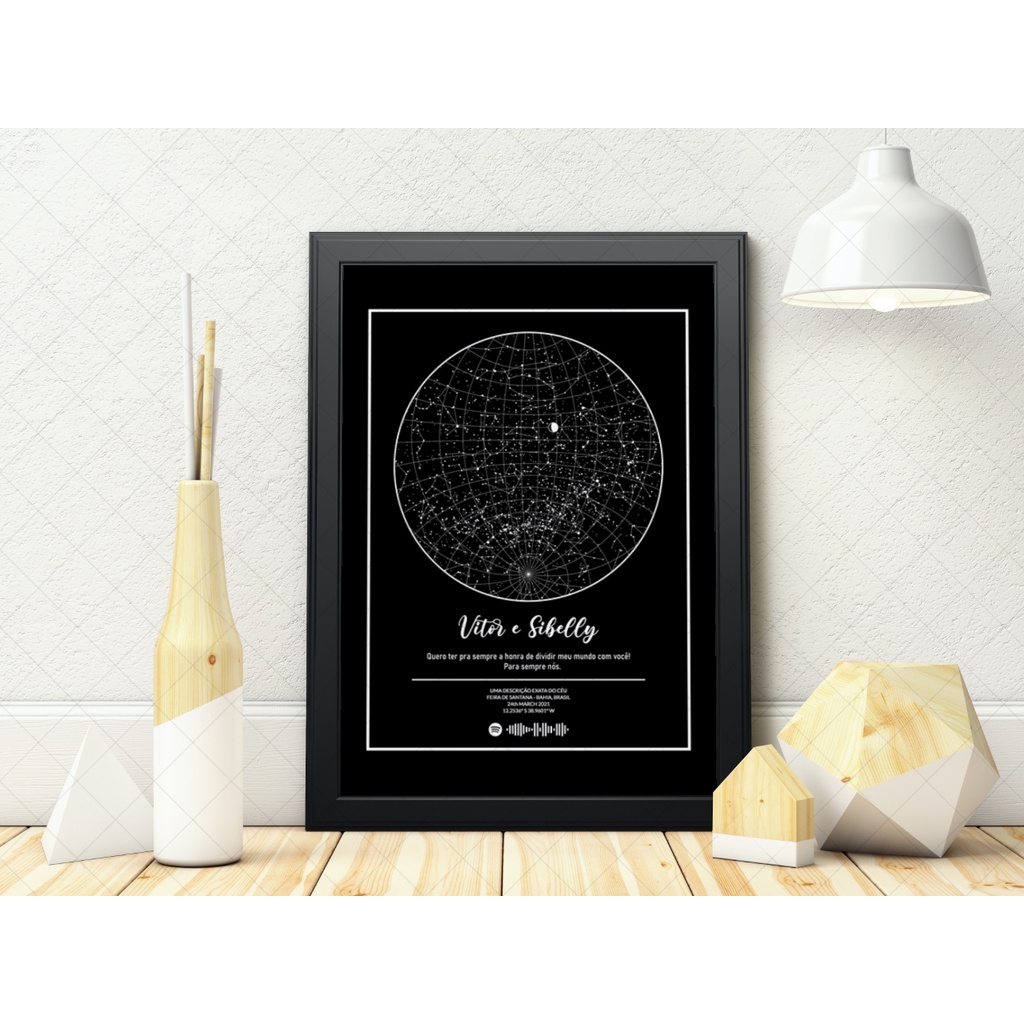 Quadro Mapa das Estrelas/ Mapa estrelar Personalizado com moldura em A4