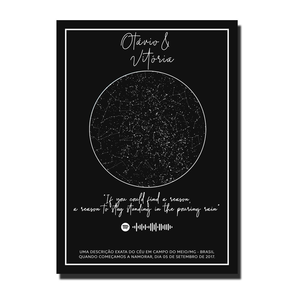 Quadro Decorativo Mapa das Estrelas Namorado Casamento Romantico Namorada Estrelar Placas Mapa Celestial Celeste Constelações Spotify Musica Dia Romantico Primeiro Beijo Pedido Casamento Dia MDF Presente Minimalista Lindo