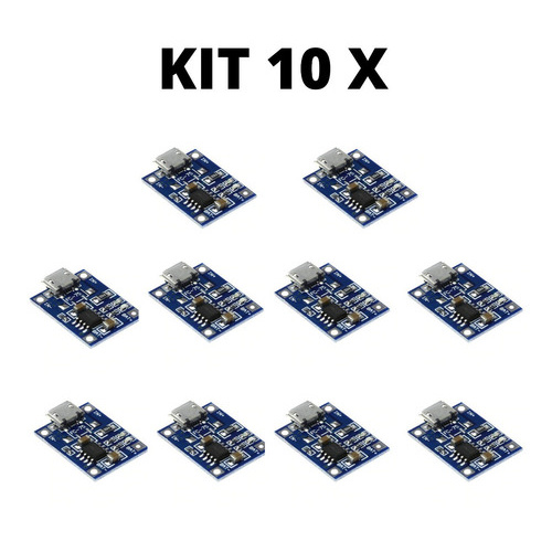 Kit c/ 10 Módulo Carregador Usb Tipo C Bateria Tp4056 c/proteção