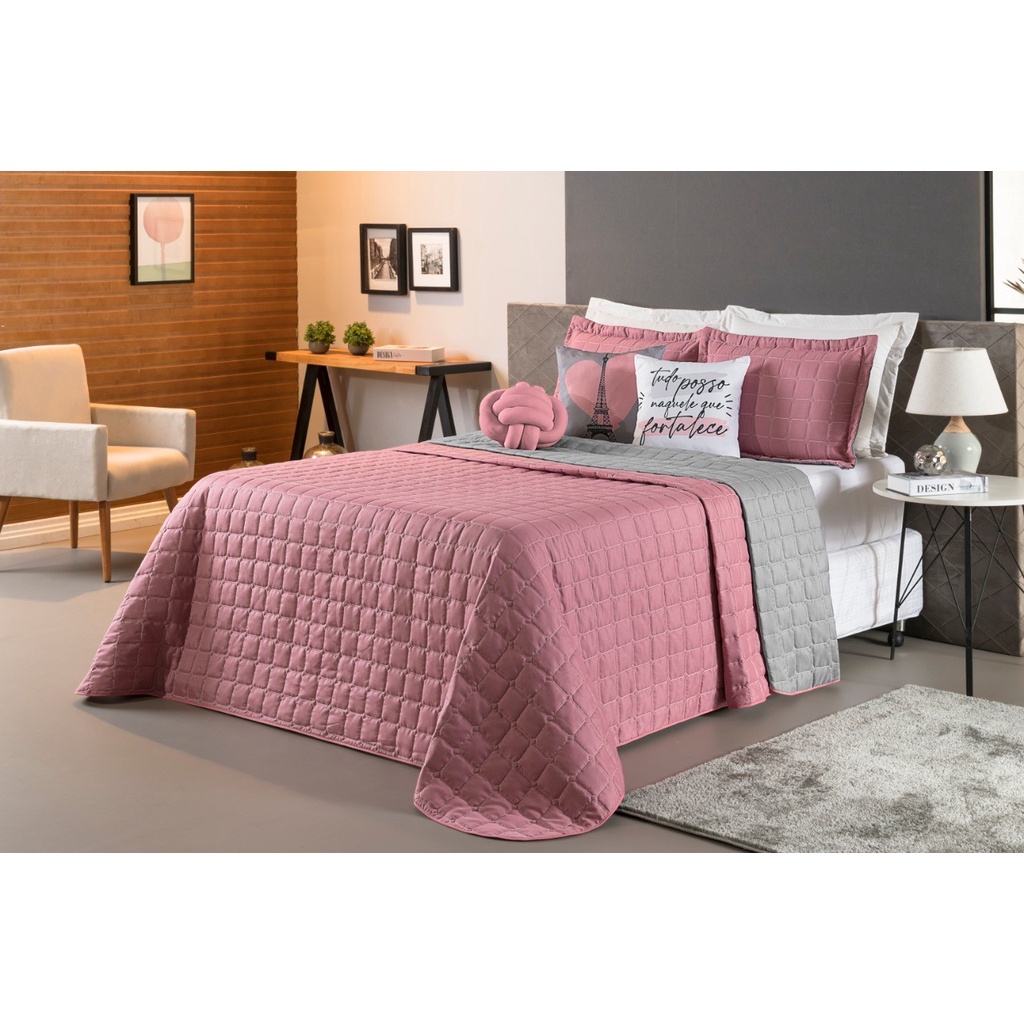 Kit Cobre Leito Queen Dupla Face Paris 8 Peças Rosê/ Cinza