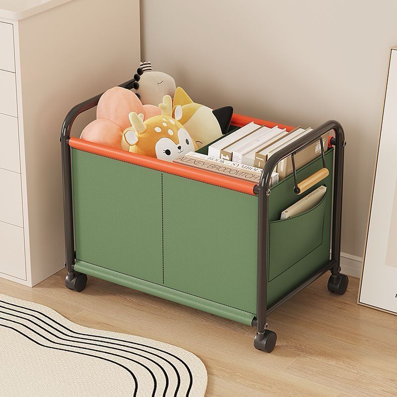 Carrinho Organizador De Armazenamento Multifuncional Verde Com Rodas Que Possuem Trava De Freio De Grande Capacidade Estrutura De Ferro Com Alça De Bambu Possui Bolso Lateral E Cantos Arredondados Para Armazenamento De Roupas Brinquedos De Crianças Caixa