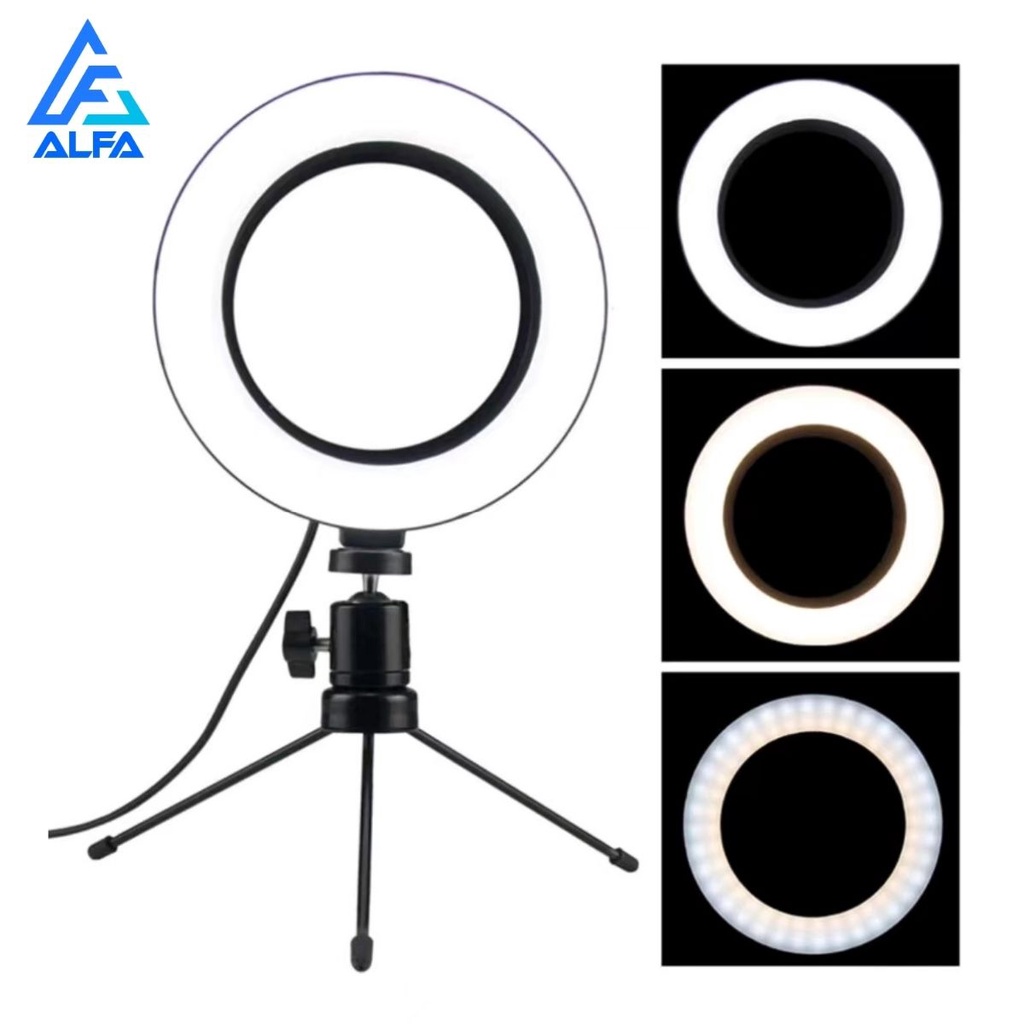 Ring Light de Mesa 6 Polegadas + Tripé De 16 Cm Blogueira Portátil Luminária De Led