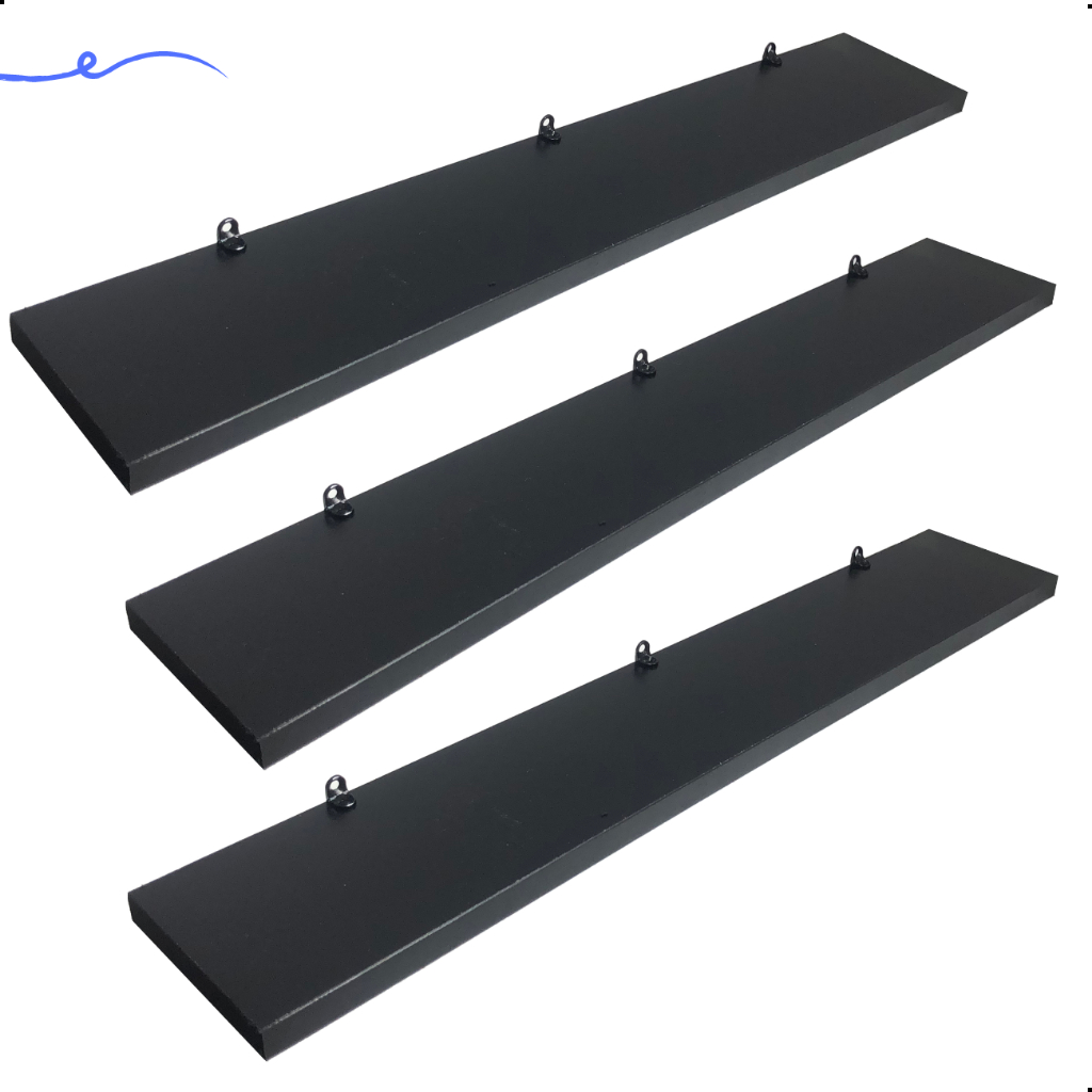 3 Prateleiras 60x10 Com Suporte Mdf Preto Organização Para Cozinha Banheiro Quarto Dormitorio Sala Lavabo Area Gourmet Escritorio Casa Lavanderia Kit Jogo Parede Decorativa Tabua 60cm Madeira Invisível Flutuante 60 Cm x 10 Cm Preta