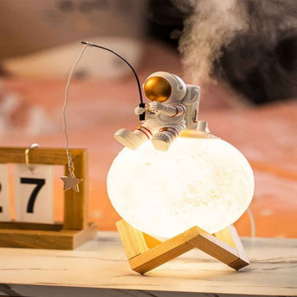 Umidificador Aromatizador Luminária Lua 3D c\ Astronauta Abajur Ultrassônico Difusor de Aromas 880ml