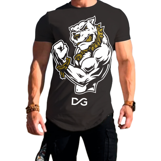 Camiseta Manga Curta Preta Masculina Longline Academia Fitness Musculação Esportes Crossfit PitBull 100% Poliéster