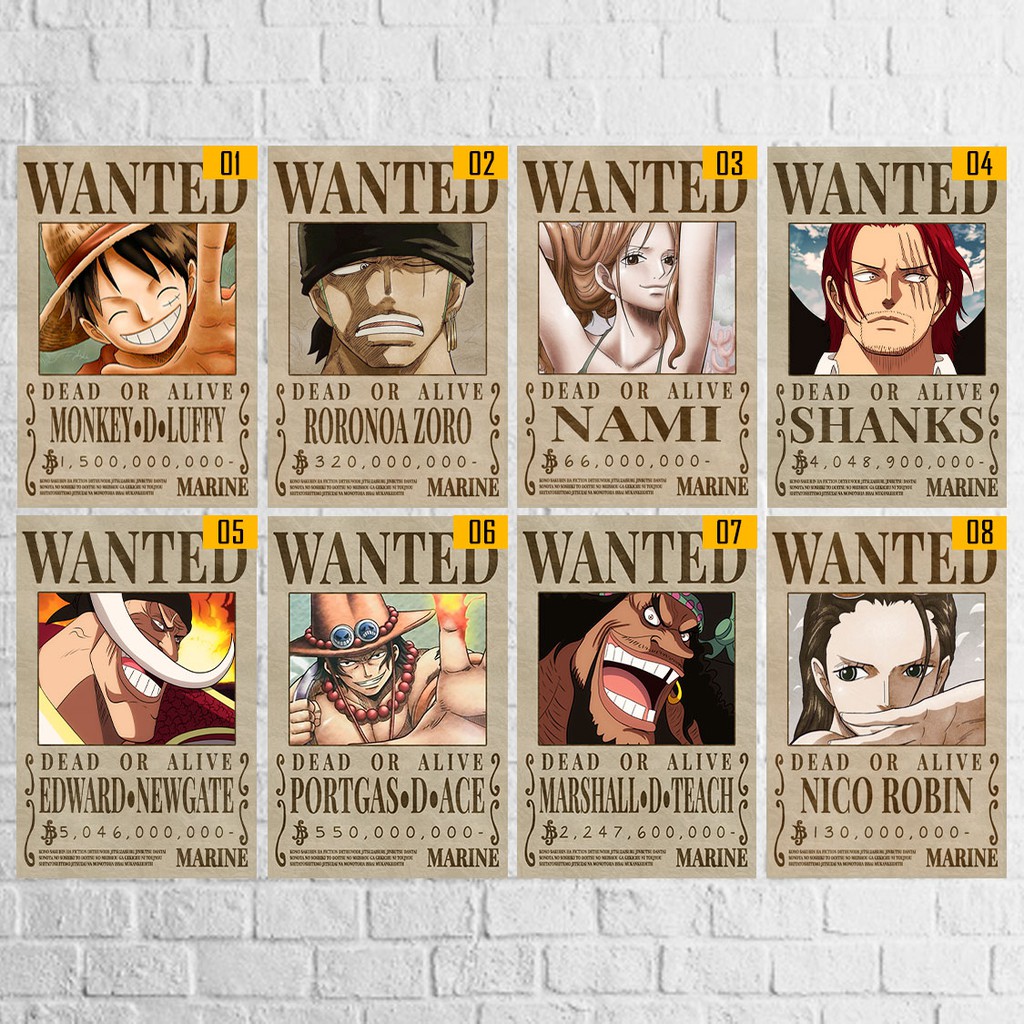 Quadro Mosaico Placa Decorativa Anime One Piece Desenho Modular Wanted Colletion Vintage Infantil Criança Presente Unidade
