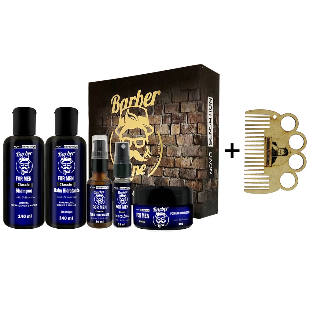 Kit para a Barba Shampoo, Condicionador, Balm, Óleo, Pente e Necessaire
