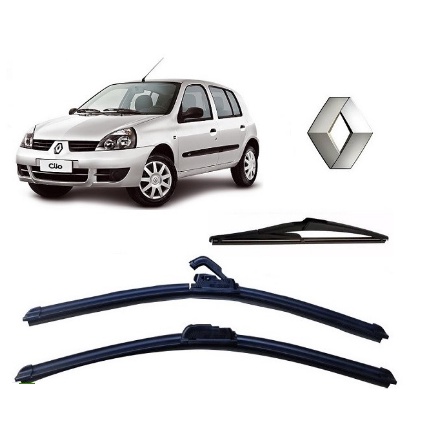 Kit 3 Palhetas Limpador De Parabrisa Dianteiro + Traseiro Para Renault Clio G2 1999 2000 2001 2002 2003 2004 2005 2006 2007 2008 2009 2010 2011 2012 2013 2014 2015 2016 2017
