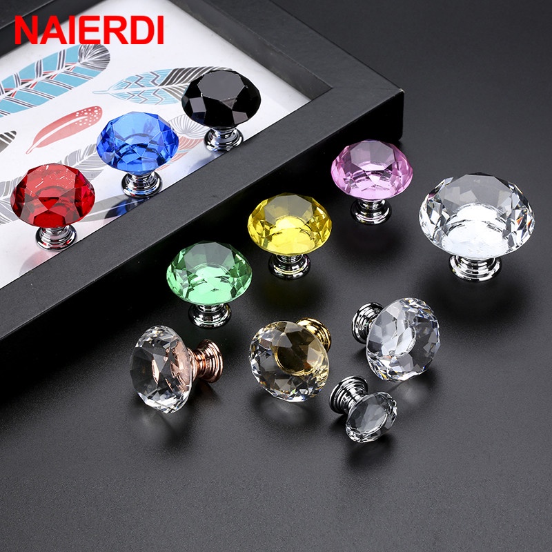 NAIERDI 30mm Design Em Forma De Diamante Puxadores De Vidro Cristal Gaveta Armário De Cozinha Móveis