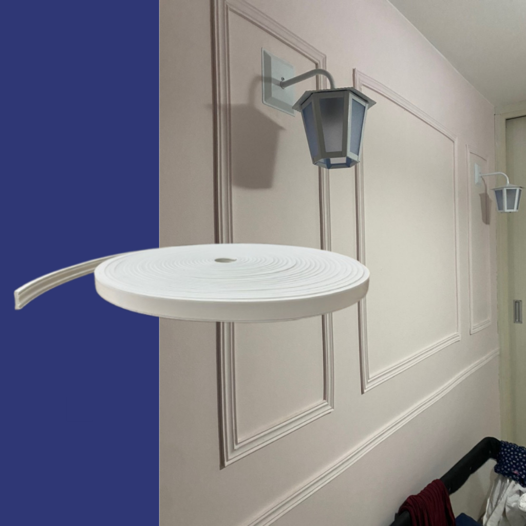 Boiserie Moldura de EVA Autocolante e Flexível 3 METROS Terra 2,50cm de largura X 8mm de espessura Branco
