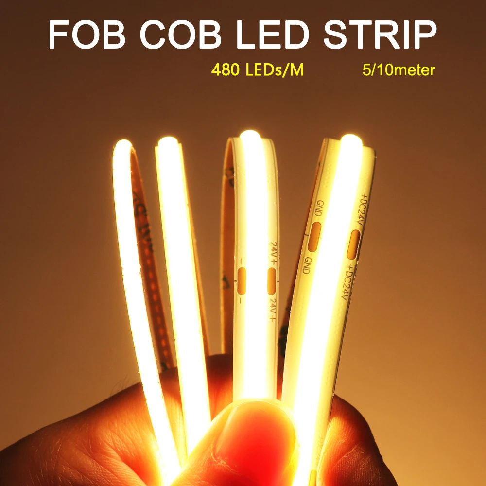 Fita LED Flexível 12V 24V COB 10M 5M 480LEDs/M De Alta Densidade 3000K 4000K 6000K Decoração De Cozinha 8mm