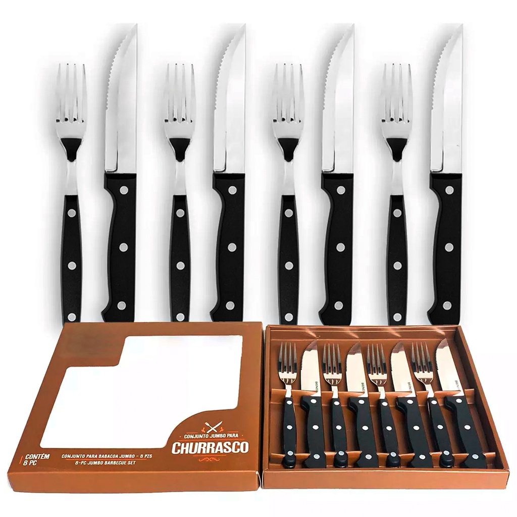 Kit Talheres Para Churrasco Conjuntos 8 Peças Aço Inox