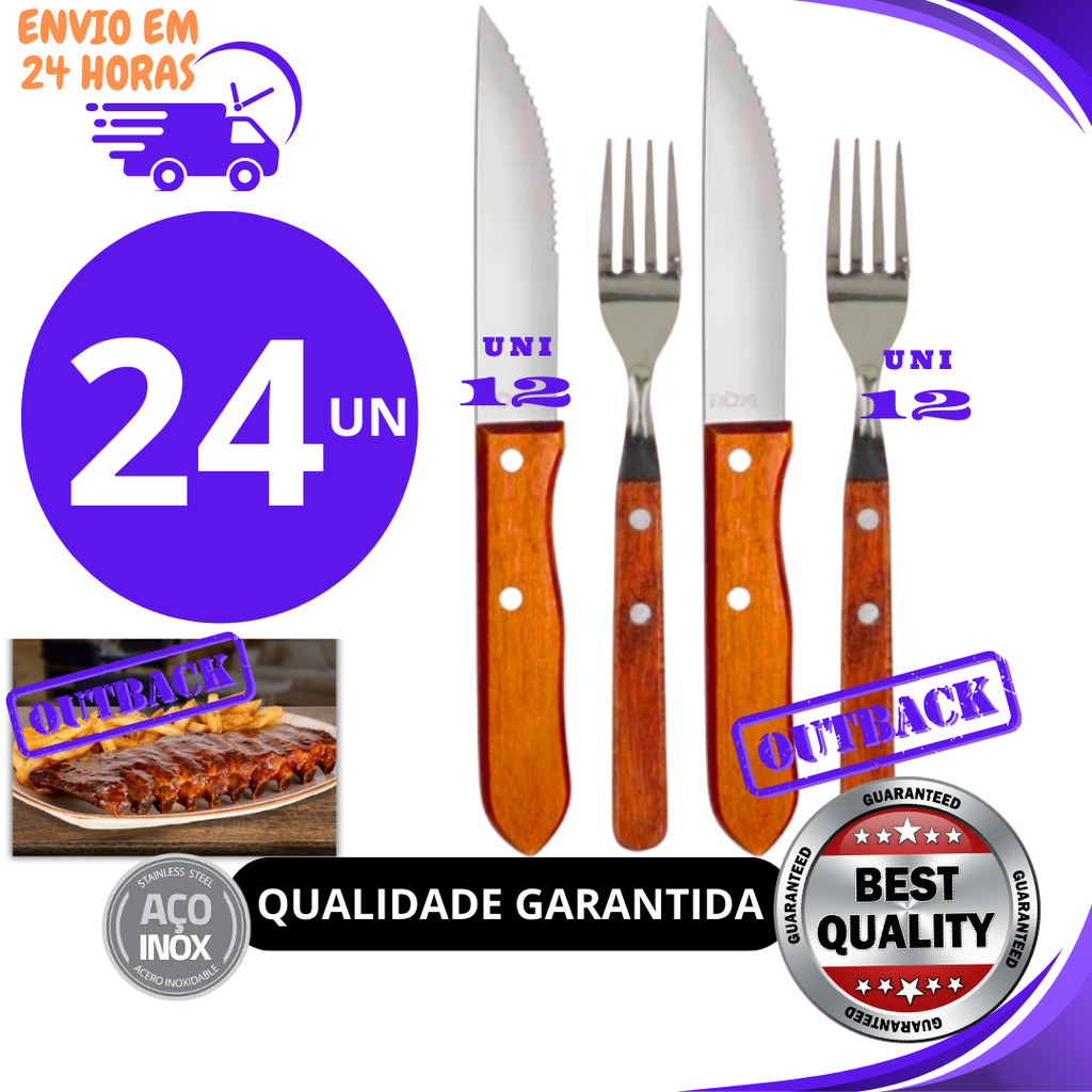 KIT 24 Peças Talheres Para Churrasco Jumbo Wooden Faca Outback Garfo cabo De Madeira Aço Inox