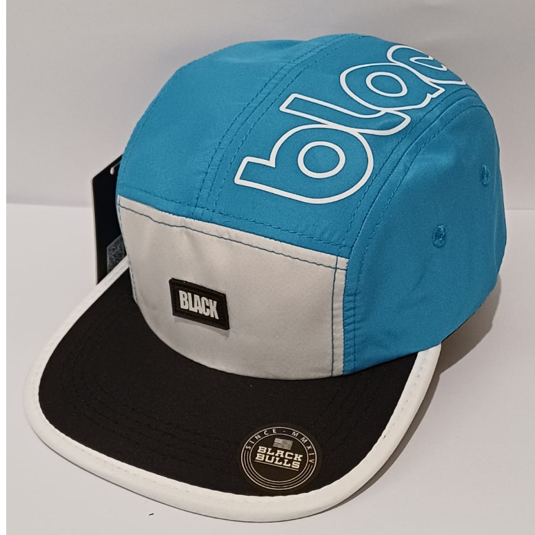 Boné 5 Five Panel Black Bulls Branco Azul Claro Preto Strapback Fita Aba Reta Skate - P08