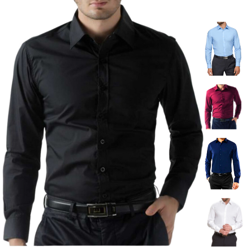 Camisa Social Masculina Slim Manga Longa Luxo Algodao