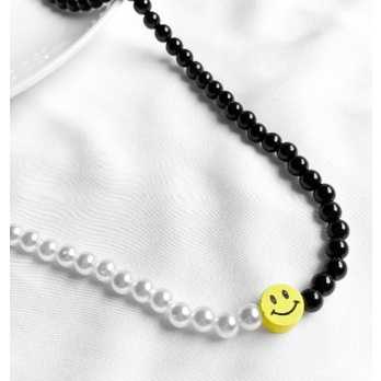 colar de perola masculina com Smile Amarelo pérola Preta Ajustável