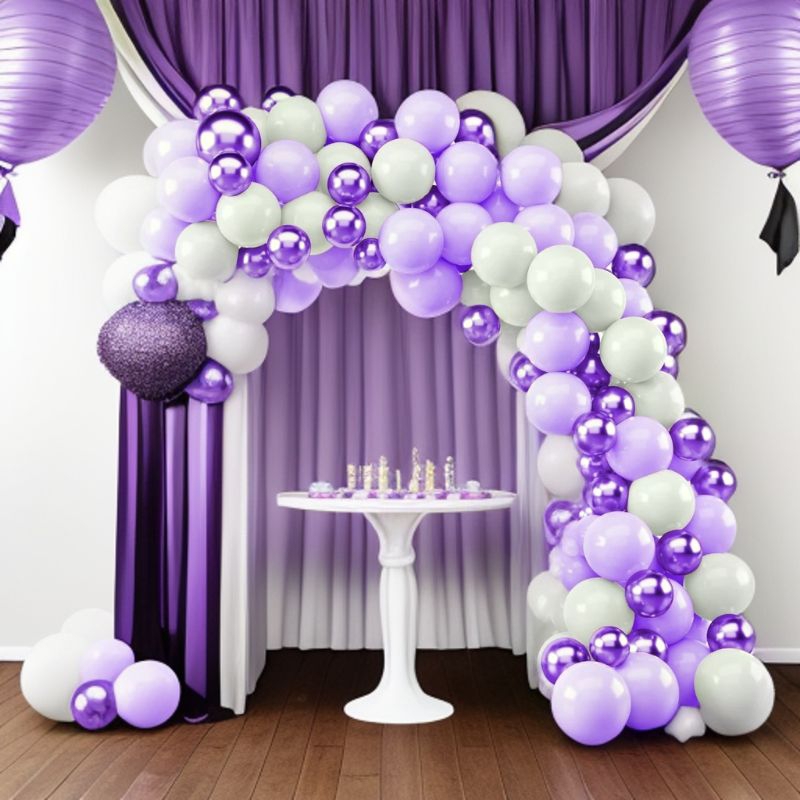 Kit 125 Balões Lilás + Branco + Violeta Metalizado - Balão Bexiga Artigo de Festa e Aniversário