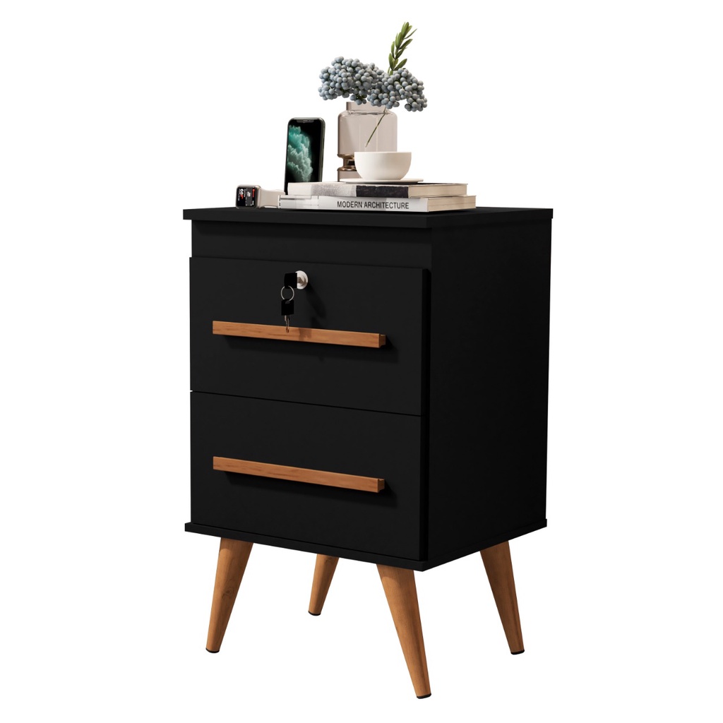 Mesa de cabeceira 2 gaveta-criado mudo com chave branco e preto para sala quarto nicho pequeno moderno-industrial