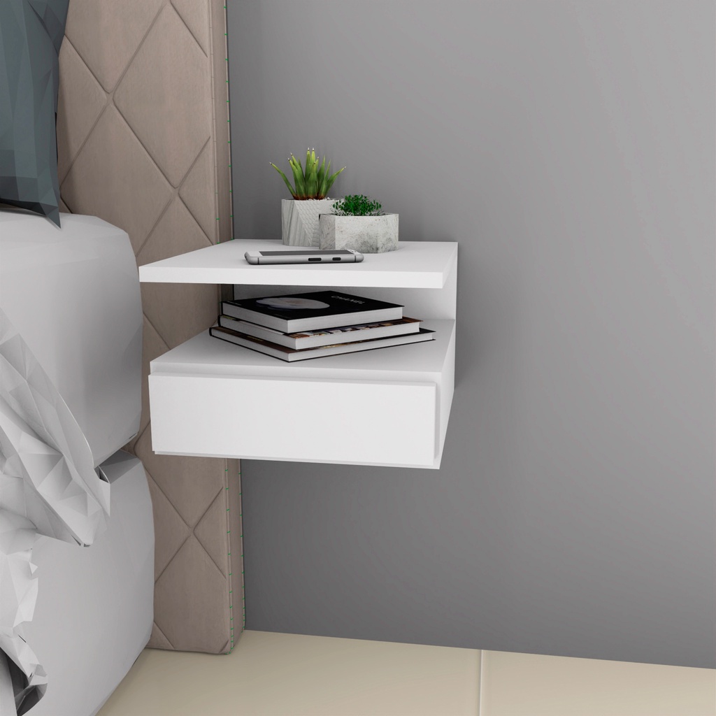 Mesa de cabeceira suspenso com gaveta e prateleira branco mvd móveis