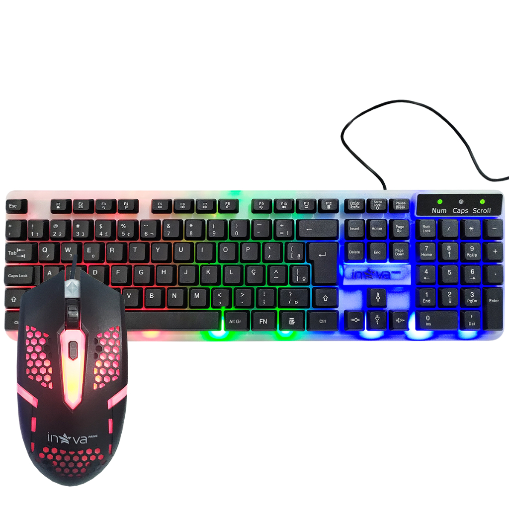 Kit Led Teclado E Mouse Gamer Semi Mecânico Com Luzes Led Rgb Computador Notebook Pc