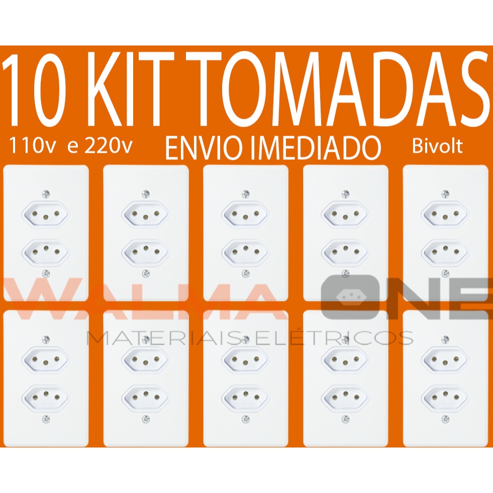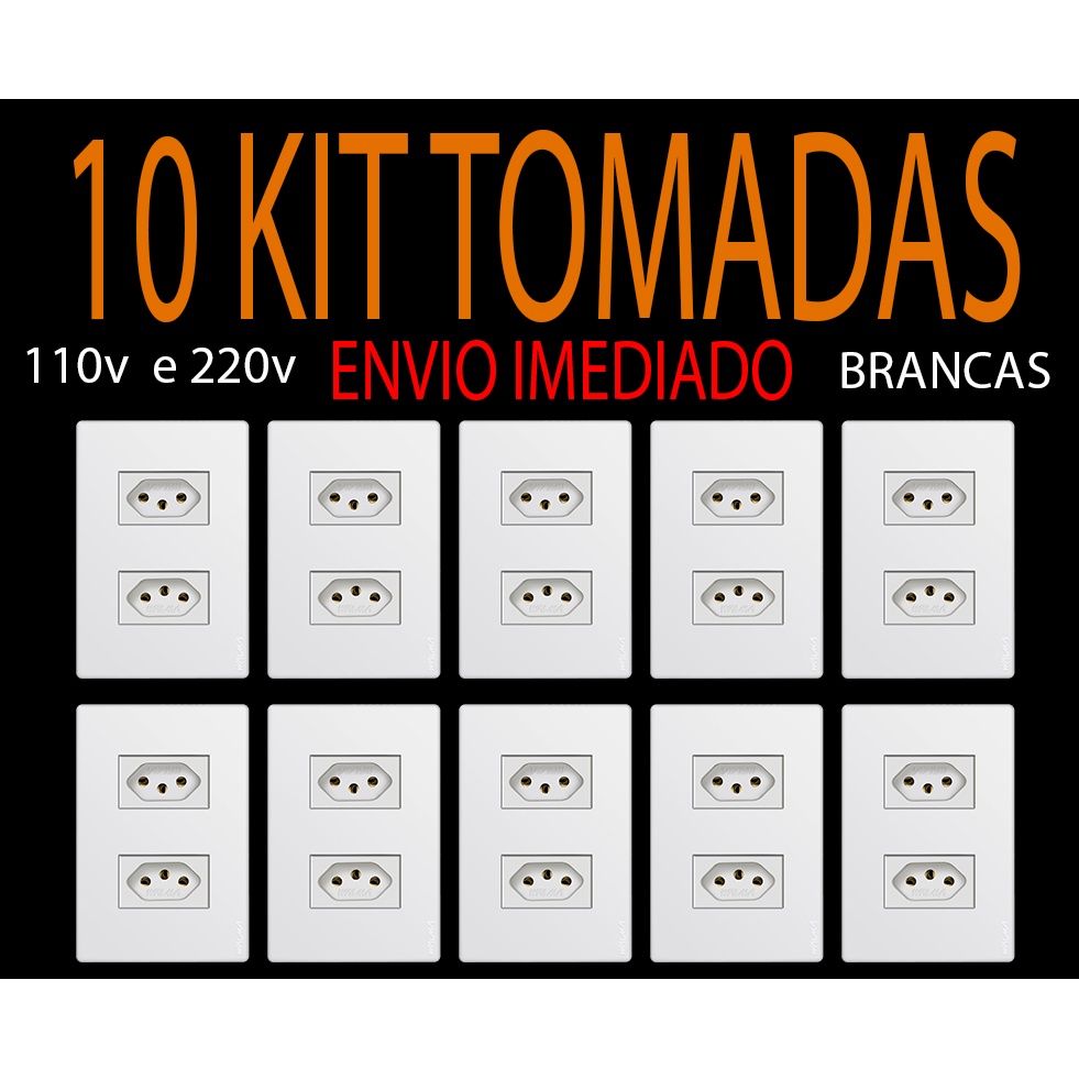 10 Tomadas DUPLAS kit 10A 20A SIMPLES BRANCA TOC COMPLETA COM PLACA E PARAFUSO BRANCA 4X2 2X4 10 20 AMPERES Tomadas femea
