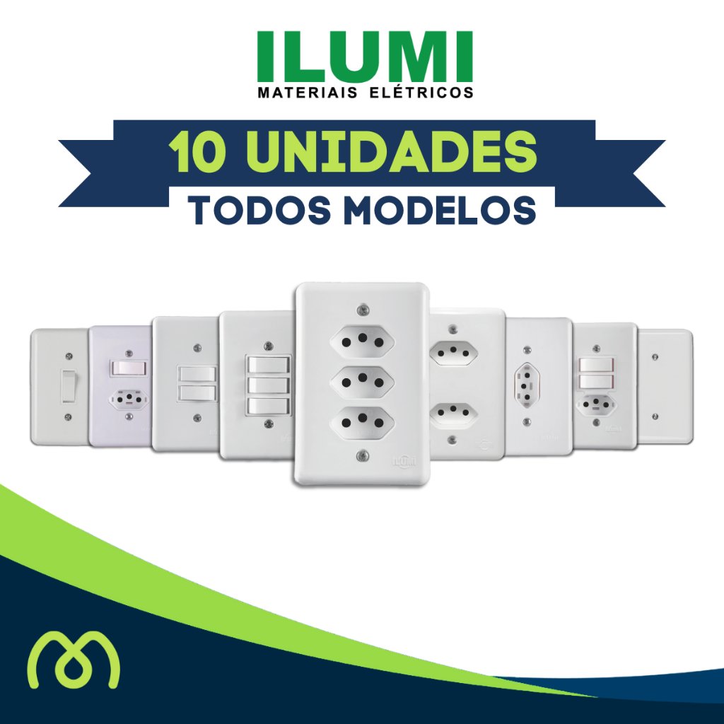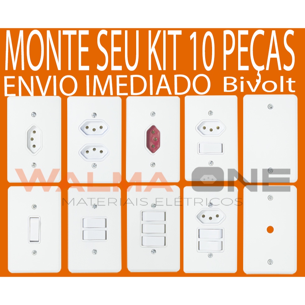 Kit 10 Tomadas 10A 20A Interruptor Apagador Simples Paralelo Placa Cega Stylus Monobloco Ilumi