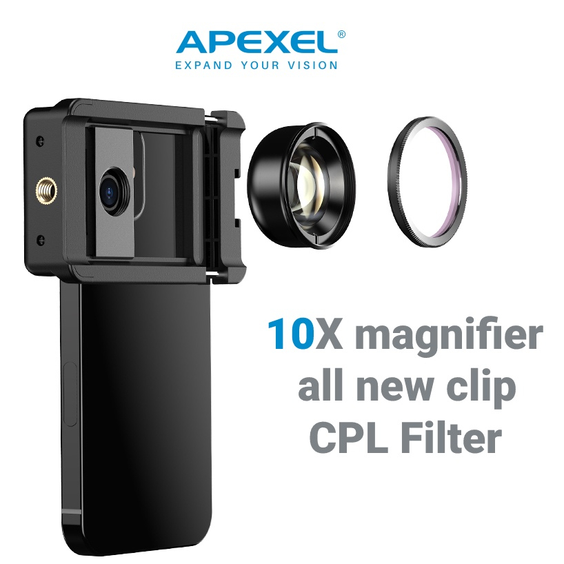 APEXEL Universal 100mm (10x) Macro Lente Inclui CPL E Nova Bolsa De Proteção De Viagem Com Clipe Para Todos Os Telefones Celulares Fotografia Divertida