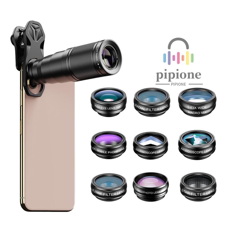 APEXEL 10 Em 1 Kit De Lentes Telefônicas Com Lente Telefoto 22X 198 ° De Caleidoscópio Fisheye 0,63x De Ângulo Amplo 15X Macr Came-PIPI1
